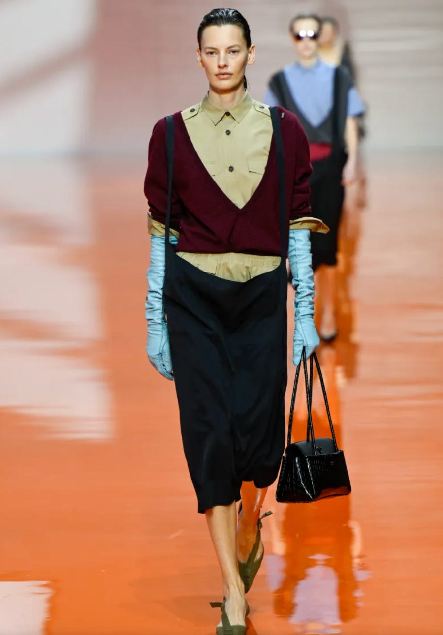 On the runway, color has to do the work. There’s no lifestyle context, no “real life” distraction. If a combination works there, it’s because the relationship between the colors is sound.