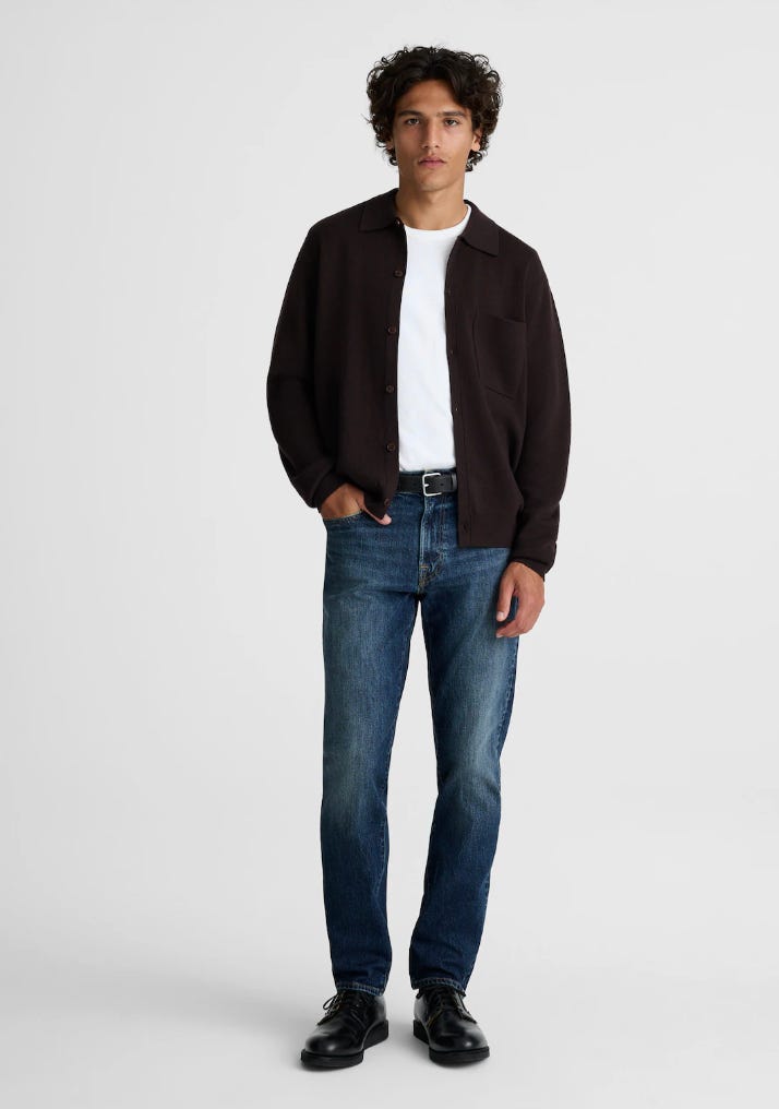The Cheat Code: Balance. You need “Straight” or “Athletic” cut pants to add visual weight to your lower half so you don’t look top-heavy.