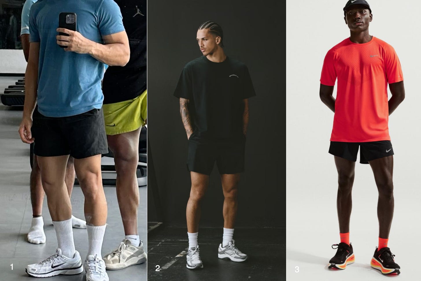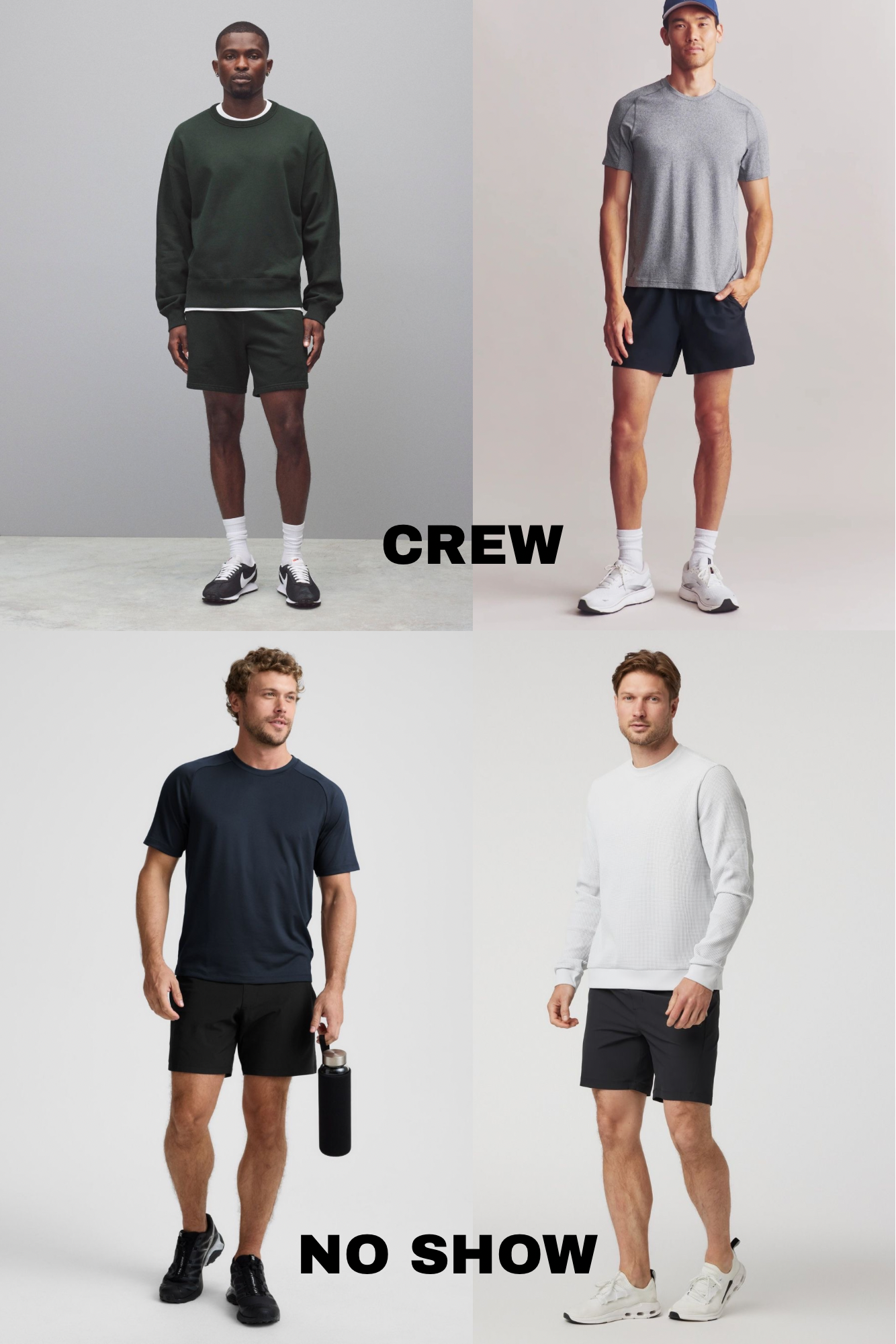 For the gym or a more athletic look, you can confidently go with a crew sock. It leans into that sporty, slightly retro feel and makes the outfit look intentional.